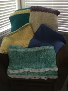 The prayer shawls, six in total, were made for our society by a member of Grace Lutheran Church, Calgary, in support of the LWMLC convention’s servant event. One prayer shawl was given to a gentleman member of our congregation who has cancer, another will be given to a young girl of our congregation who also is undergoing cancer treatments. The plan is to distribute to our congregational members as the need arises.